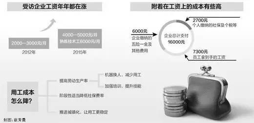 但用工成本上升,员工就能得到实惠吗?一名月薪1万元的员工,扣除个人缴纳的社保及个税等,拿到手的部分是7300元,而企业总计却为其支付约1.6万元!