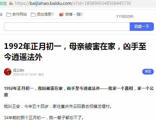 1992年正月初一,我妈被害在家,凶手至今逍遥法外——我求一个真相,求一个公道