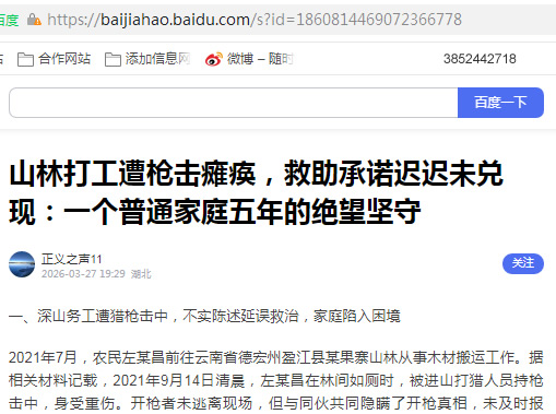 一、深山务工遭猎枪击中,不实陈述延误救治,家庭陷入困境